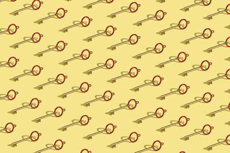 Creative seamless wallpaper with vintage key arranged in the pattern on a yellow background