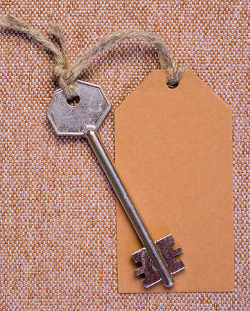 a vintage metal key with an ornate design sits on a plain surface, offering space for text or design