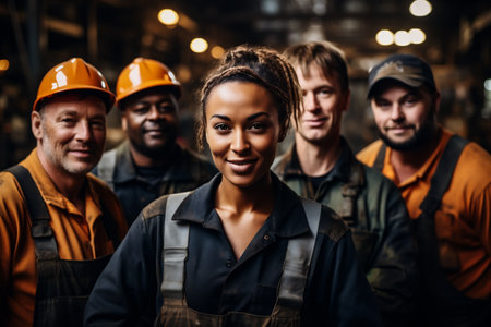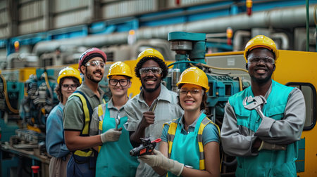 A Diverse professionals at construction site, showcasing teamwork and industrial development