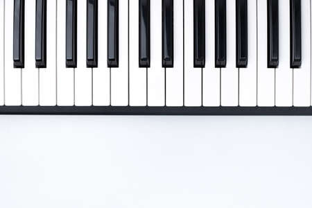 Synthesizer piano key board top view.Professional electronic midi keyboard with black and white keys.