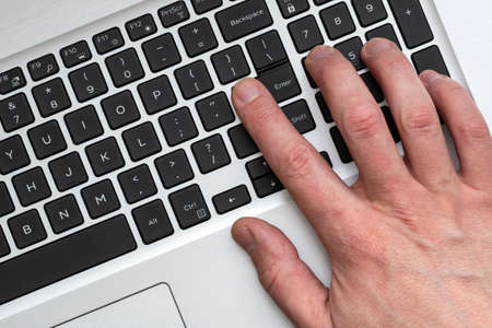 Male fingers on the laptop keyboard close-up.