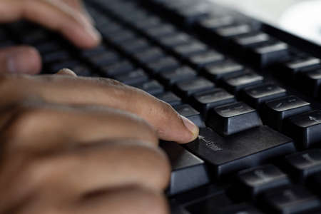 Black man hands typing on computer keyboard