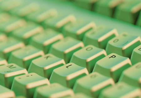 Keyboard close-up in a front of monitor. Keyboard with copy space .