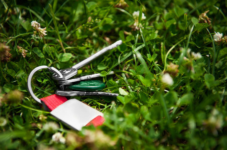 Keys on green grass outdoors. lost and found