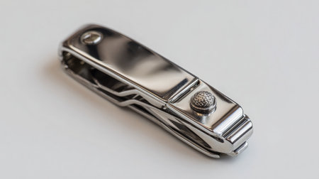 Stainless steel nail clipper placed neatly on a white background with soft shadows and clean highlights