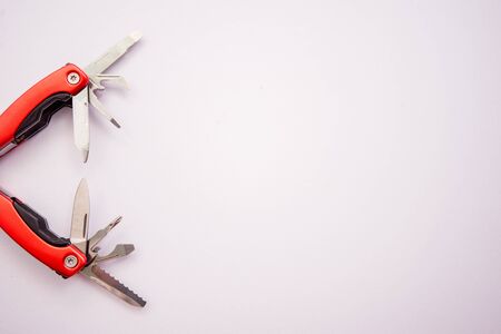 multifunctional Swiss knife on a red background