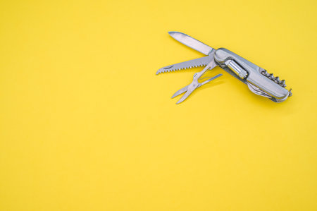 multifunctional metal knife on a yellow background