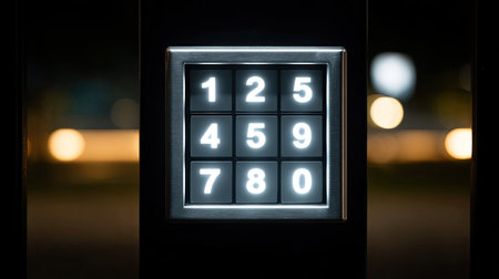 A close-up view of a modern electronic keypad featuring illuminated numbers, ideal for secure access control systems in residential and commercial settings.