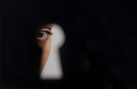 Woman's eye through a keyhole