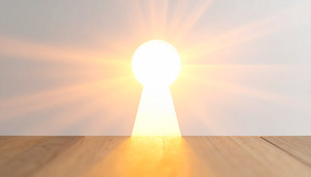 AI generated image of a keyhole illuminated by a beam of light. This visual represents how technology unlocks a better quality of life for seniors. Ideal for themes of innovation and progress.