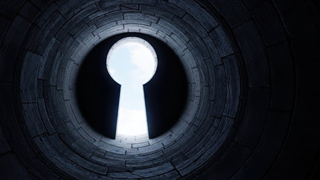 Keyhole in the dark tunnel. 3d render. Conceptual image.