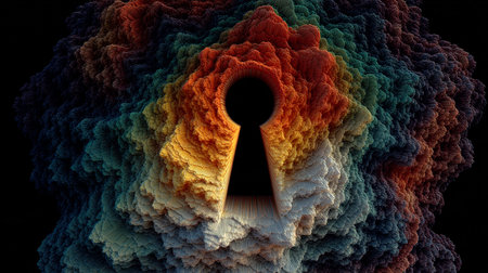 Giant keyhole in the center of a vast matrix. Keyhole in data security. Cyber data and information privacy. By generative Ai