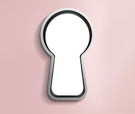 Concepts of peek into the secret of something. A empty blank white space in the keyhole surround by pastel red pink wall background. illustration.