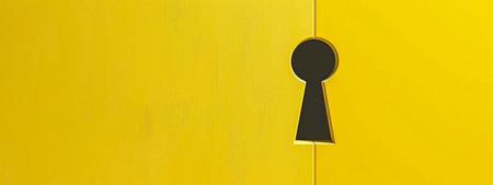 Keyhole in yellow wall, minimalist background, concept of security, AI generated