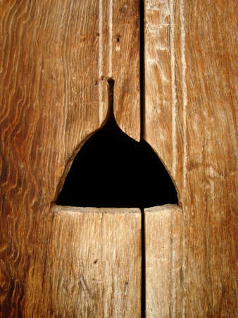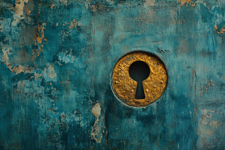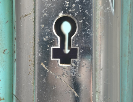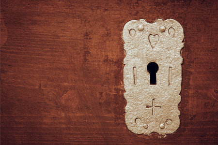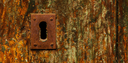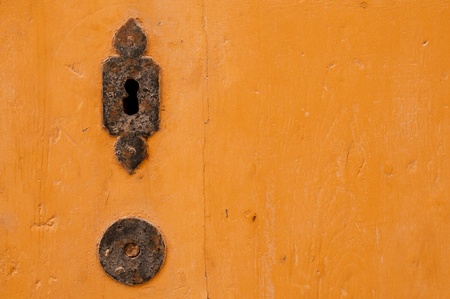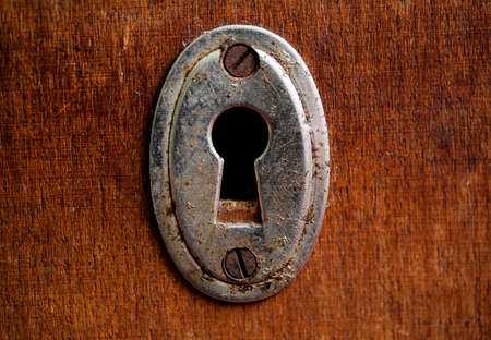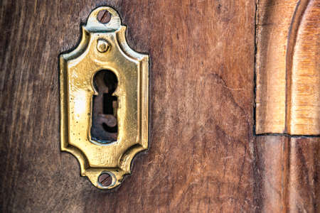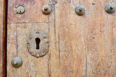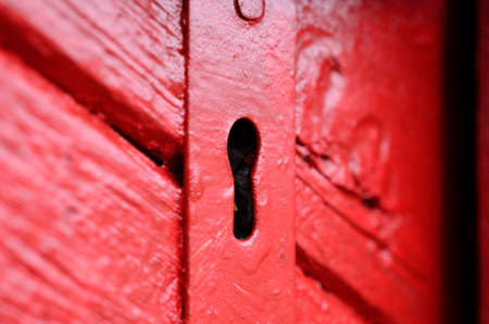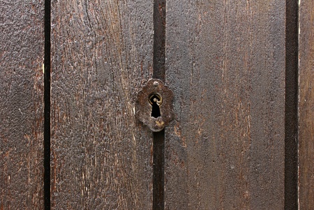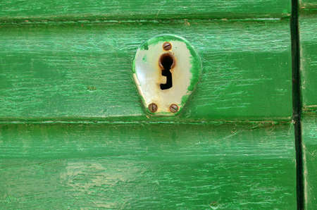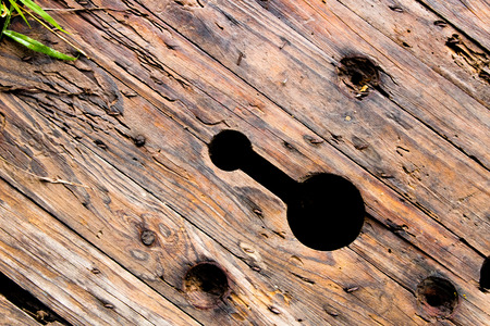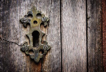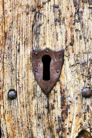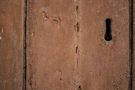 Keyhole in an old door with an interesting texture, a remnant of an old entrance security, vintage