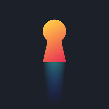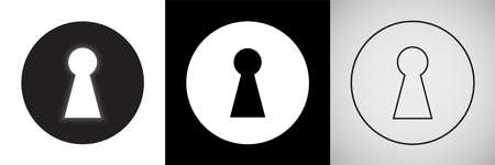 Keyhole vector isolated icons. Door key hole with light glow silhouette and outline in circle signs