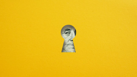 Hundred-Dollar Bill Face Behind Keyhole Representing Economic Observation and Key to Financial Success