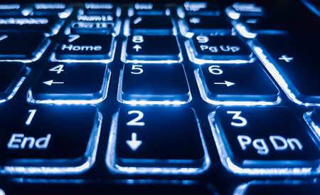 keyboard with blue backlight on work table. button light