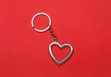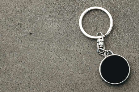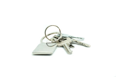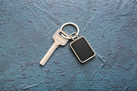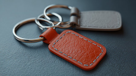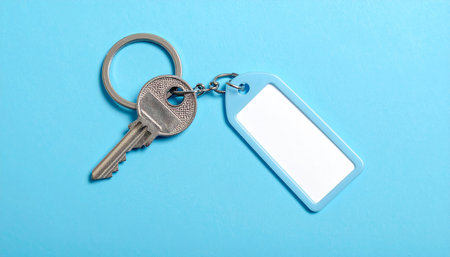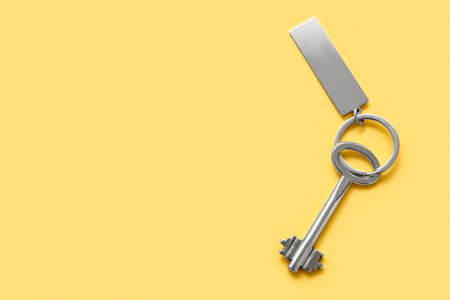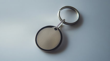 A stylish silver key attached to a keyring, set against a minimalistic background. Perfect for concepts of security, simplicity, and modern design.