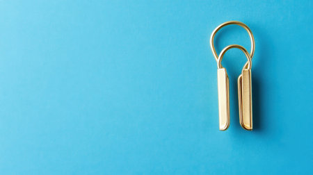 Discover a striking image of gold paper clips set against a vibrant blue backdrop, ideal for showcasing modern office tools or stationery accessories.