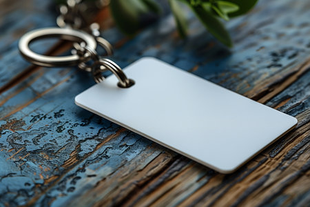 A Silver Key Tag Resting On A Weathered Wooden Surface