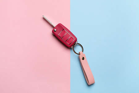 A single key dangles from a ring, showing its colorful design. The backdrop features a beautiful blur of colors, creating a dreamy atmosphere.