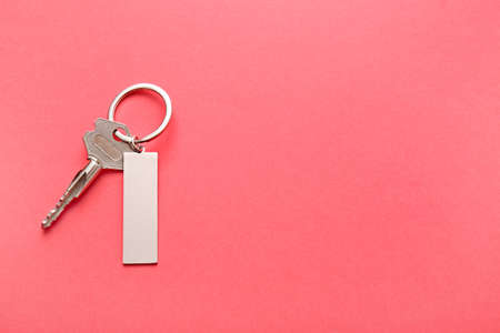 Door key lies on pink background. Set of keys. Bunch of keys. House key. New house concept. Rental and Selling.
