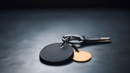 Unique handmade textured keychain on rustic wooden surface. That the image is generated using AI.