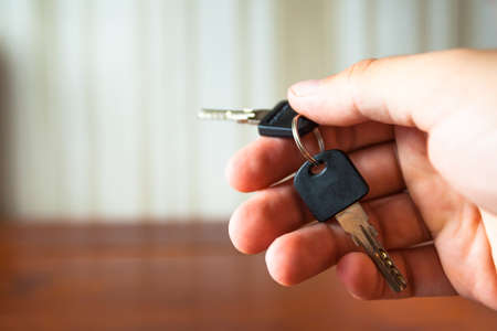 Hand Holding Keys To New Home, Car Or Apartment. Concept Of Real Estate, Rental, Insurance