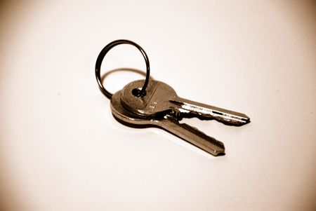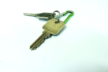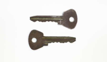 Old key isolated. Keys on table. Ancient keys, used for long time. Vintage key on white background