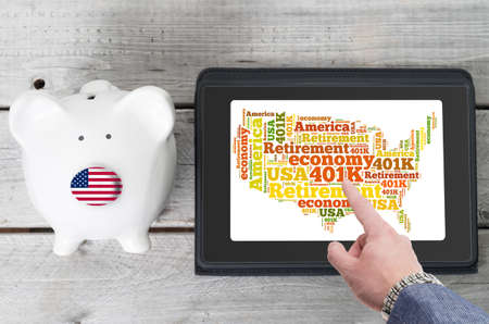 USA small symbolic flag on a rocky background. Idea for USA study, travel, election