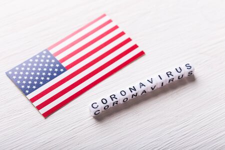 Covid-19, pandemic and virus concept - coronavirus with american usa flag on white background.
