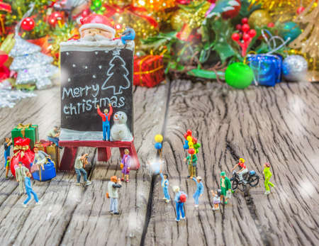 image of dolls on wooden background with ornaments in Christmas time