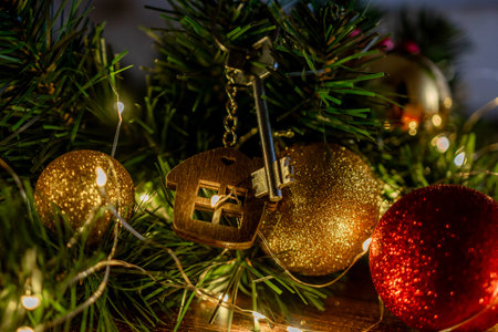 Hanging Christmas decorations and ornaments in the Christmas tree