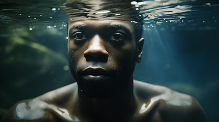 Portrait of young african american man underwater looking at camera
