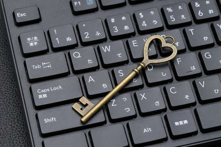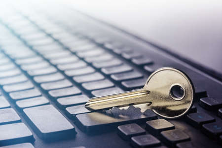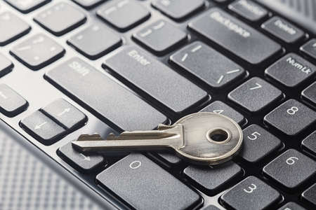 Key lock on PC keyboard. Сoncept of computer security and protection of personal data on Internet.