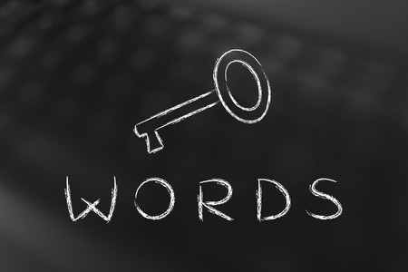 Keywords text written with actual key, funny minimal chalk outline illustration