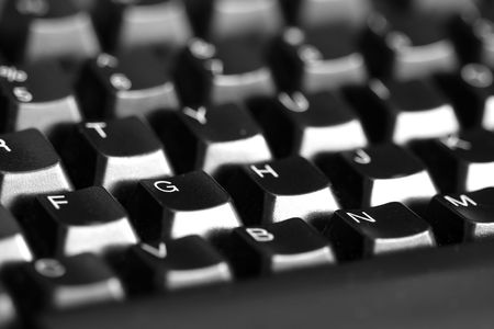 Close up of lettered keys on an old typewriter. Shallow depth of field. Vintage filter applied.
