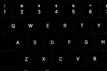 Modern backlit laptop keyboard with button W, close-up. concept programming