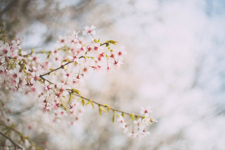 Close focus on cherry blossom (Sakura Tree Flower) and solf blur background