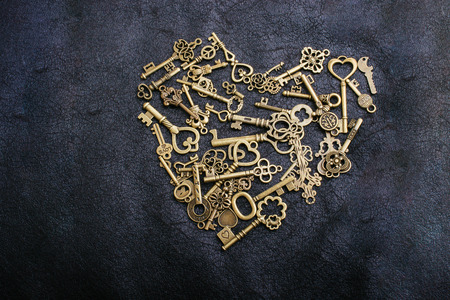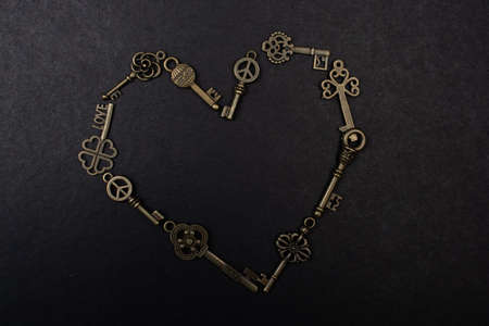 Retro metal keys form a heart shape on black