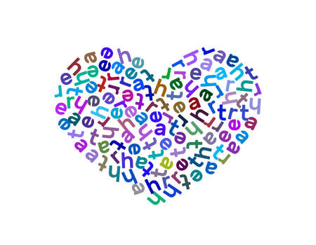 Heart shape from letters. Isolated on white background. Vector colorful illustration.