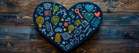 A series of icons representing different subjects (math, science, art, etc.) arranged to create a heart shape. Generative AI