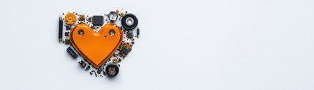 This vibrant heart-shaped arrangement of electronic components symbolizes love for technology. It presents a modern, artistic take on emotions through a minimalistic design.