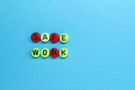 The word WORK is written in wooden cubes in black letters on a yellow background.