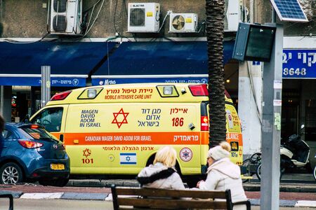 Tel Aviv Israel February 11, 2020 View of a Israeli ambulance rolling in the streets of Tel Aviv in the afternoon