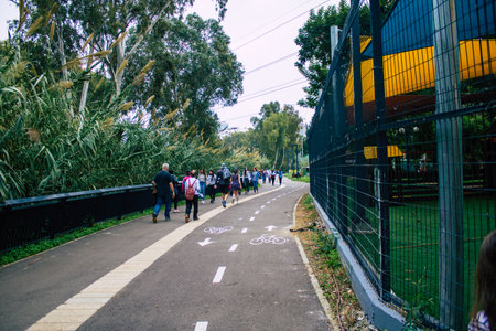 Tel Aviv Israel January 11, 2020 View of unidentified people walking on Herbert Samuel Promenade in Tel Aviv in the afternoon