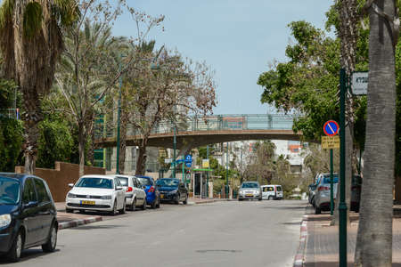 Israel. Tel Aviv. 15 APRIL 2015. View of city streets and city life. One of the districts. Car traffic in the background of a residential area.