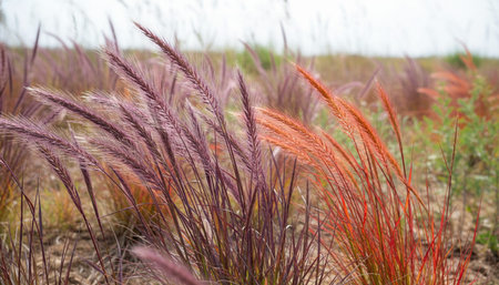 Close up of red and green flowers in the garden, botany