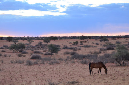 Beautiful sunset over the scenic Kalahari landscape in Namibia